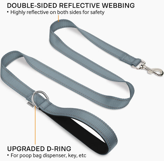 Double-Sided Reflective Dog Leash, 6 FT/5 FT/4 FT, Padded Handle Nylon Dogs Leashes for Small & Medium Dogs Walking, Gray, 5FT